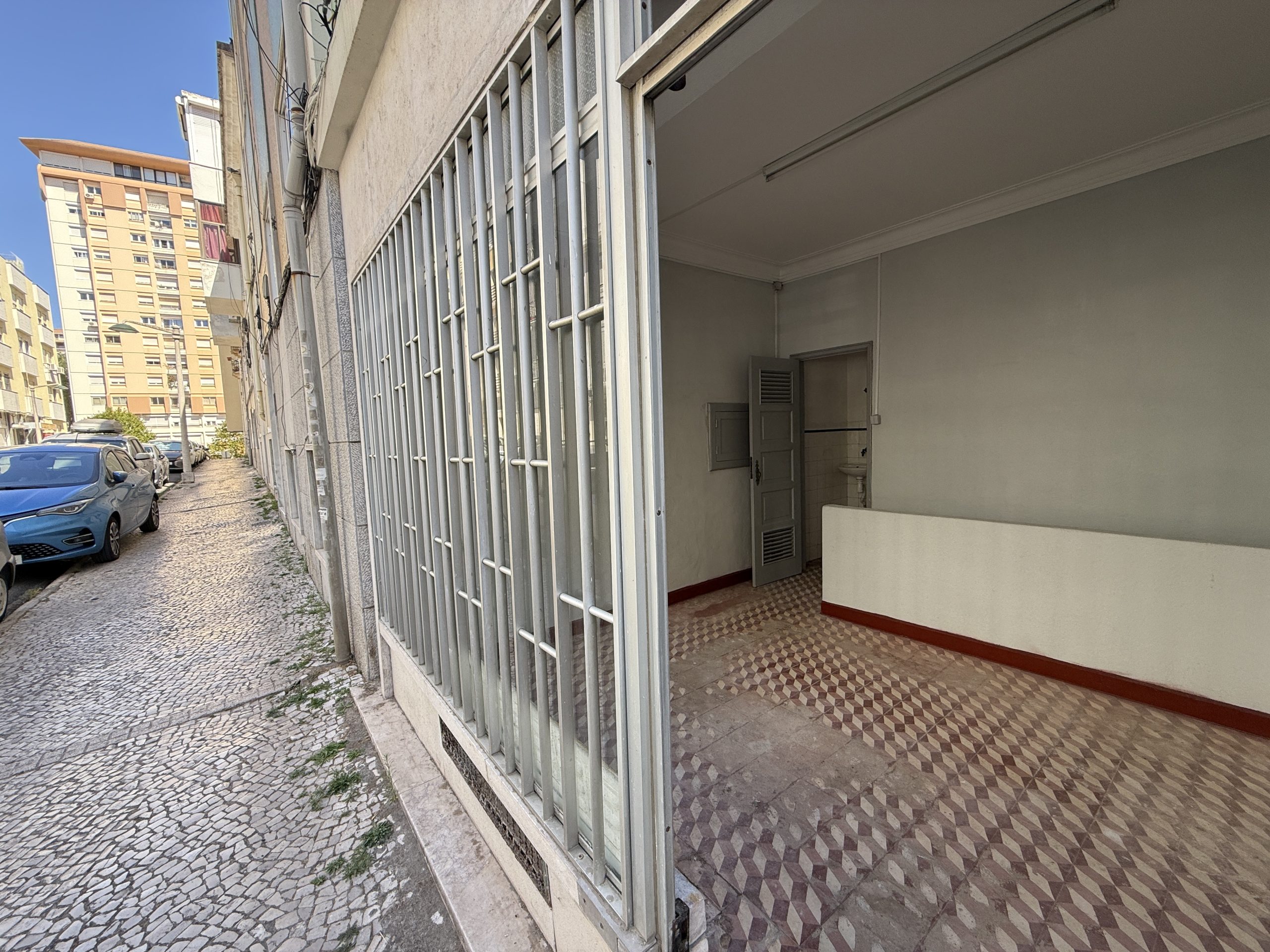 Espaço comercial com uma área bruta privativa de 17,50 m² no Rés-do-Chão + 17,50 m² no piso -1, estrategicamente localizado em plena Rua Francisco Tomás da Costa, Bairro do Rego, Avenidas Novas.