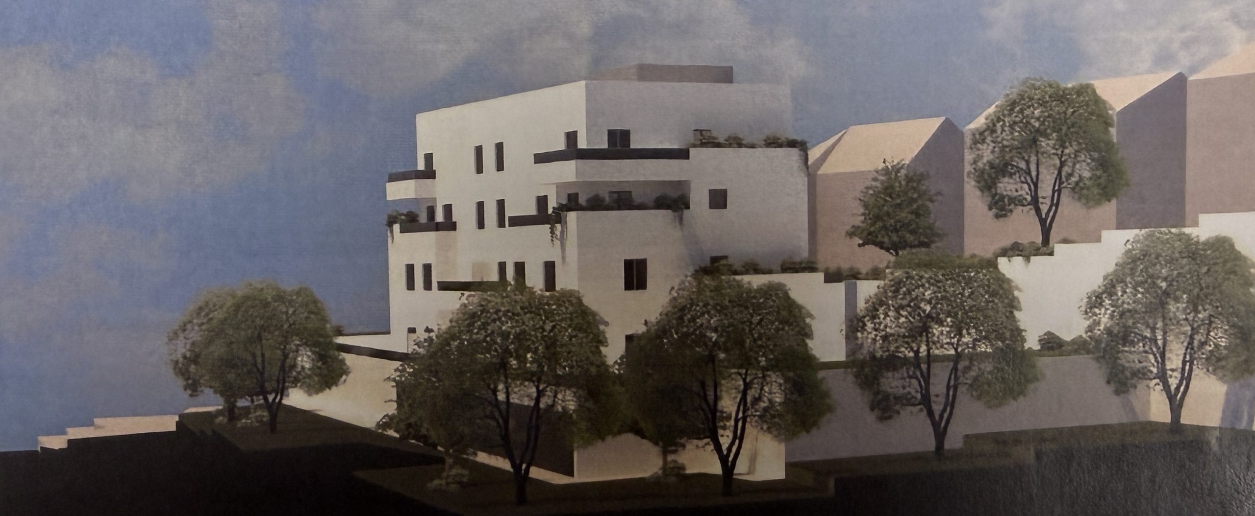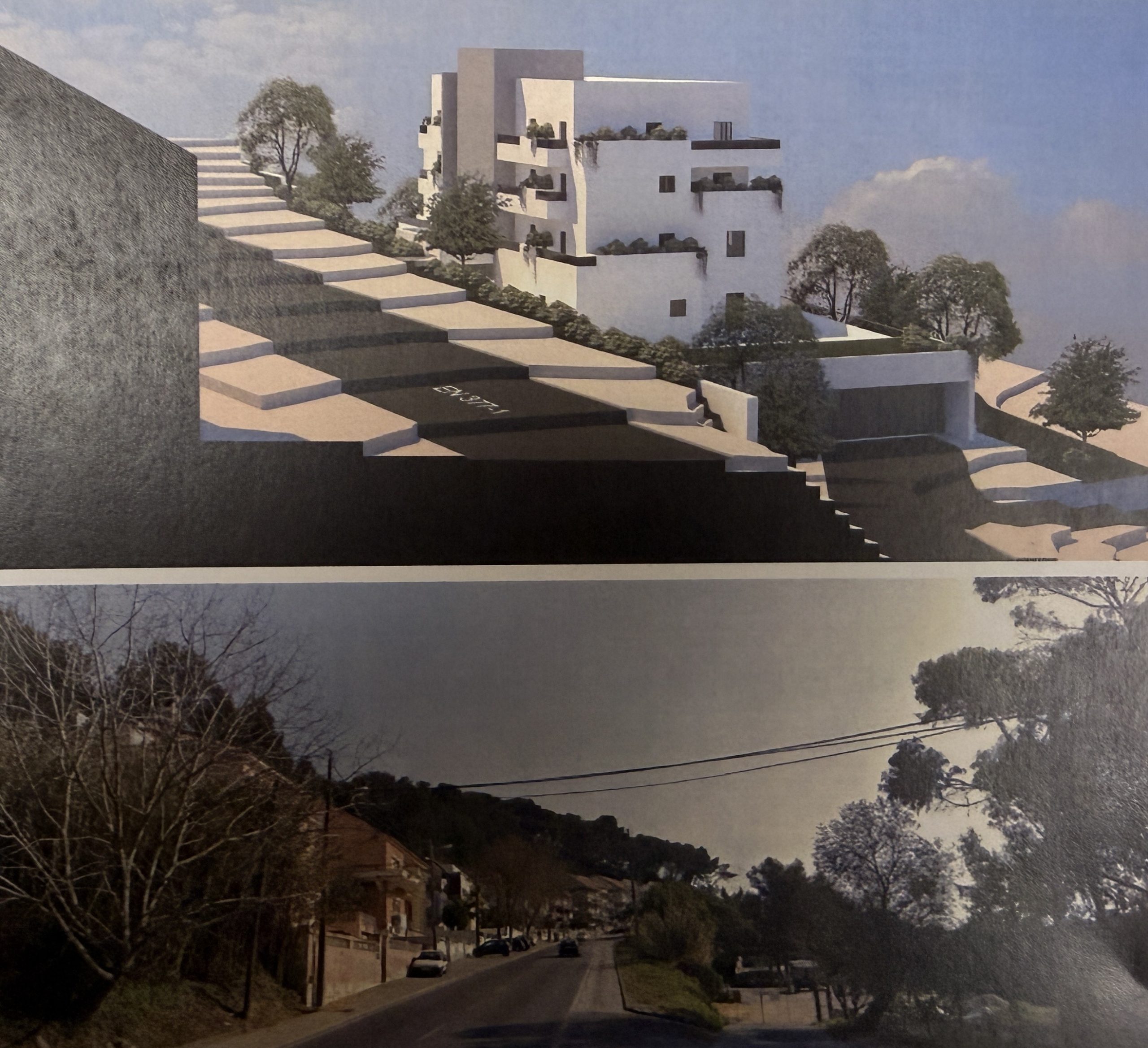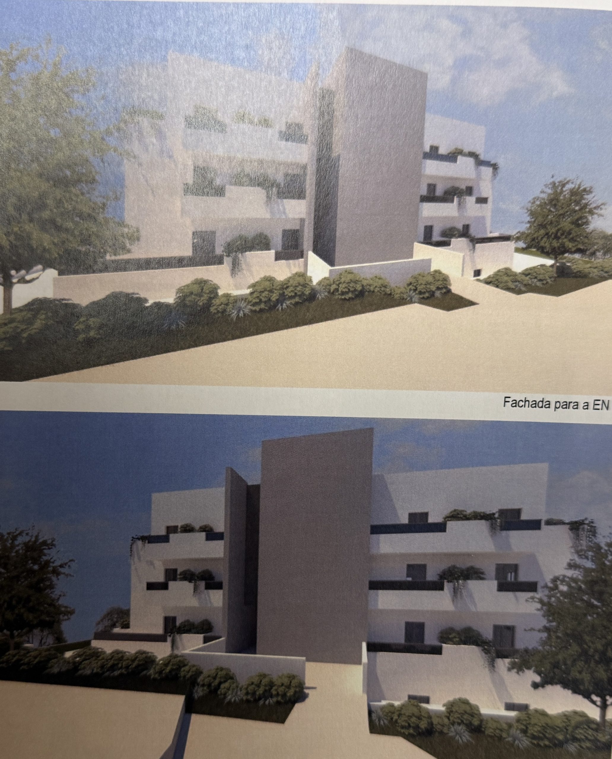 O terreno comporta uma construção de dois blocos de edifícios de 4 pisos acima do solo e 2 pisos abaixo do solo.